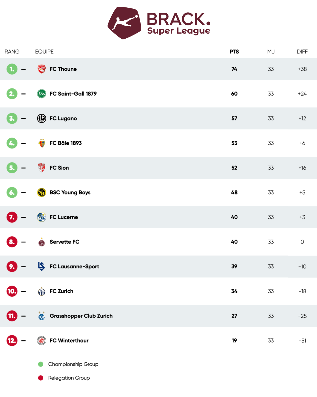 Classement (J33)